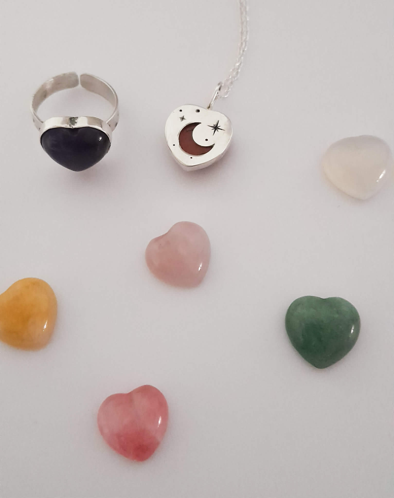 Super bonitos anillo de piedras naturales forma de corazón Tamaño entre 1.3 cm y 1.5 cm