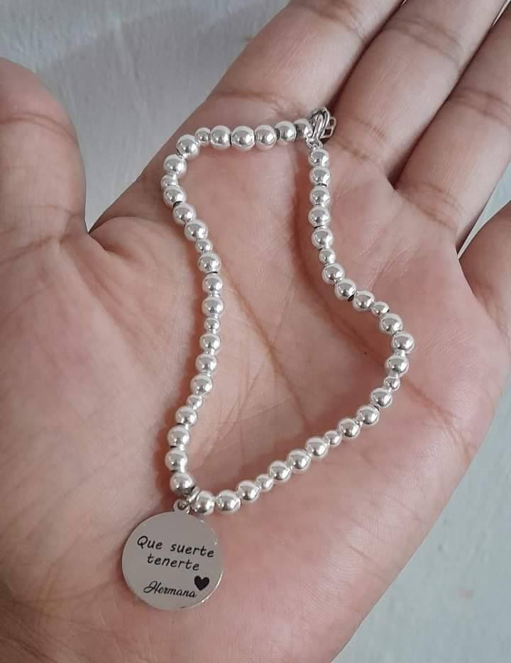 Pulsera de Bolitas con Dije Personalizado en Plata .950