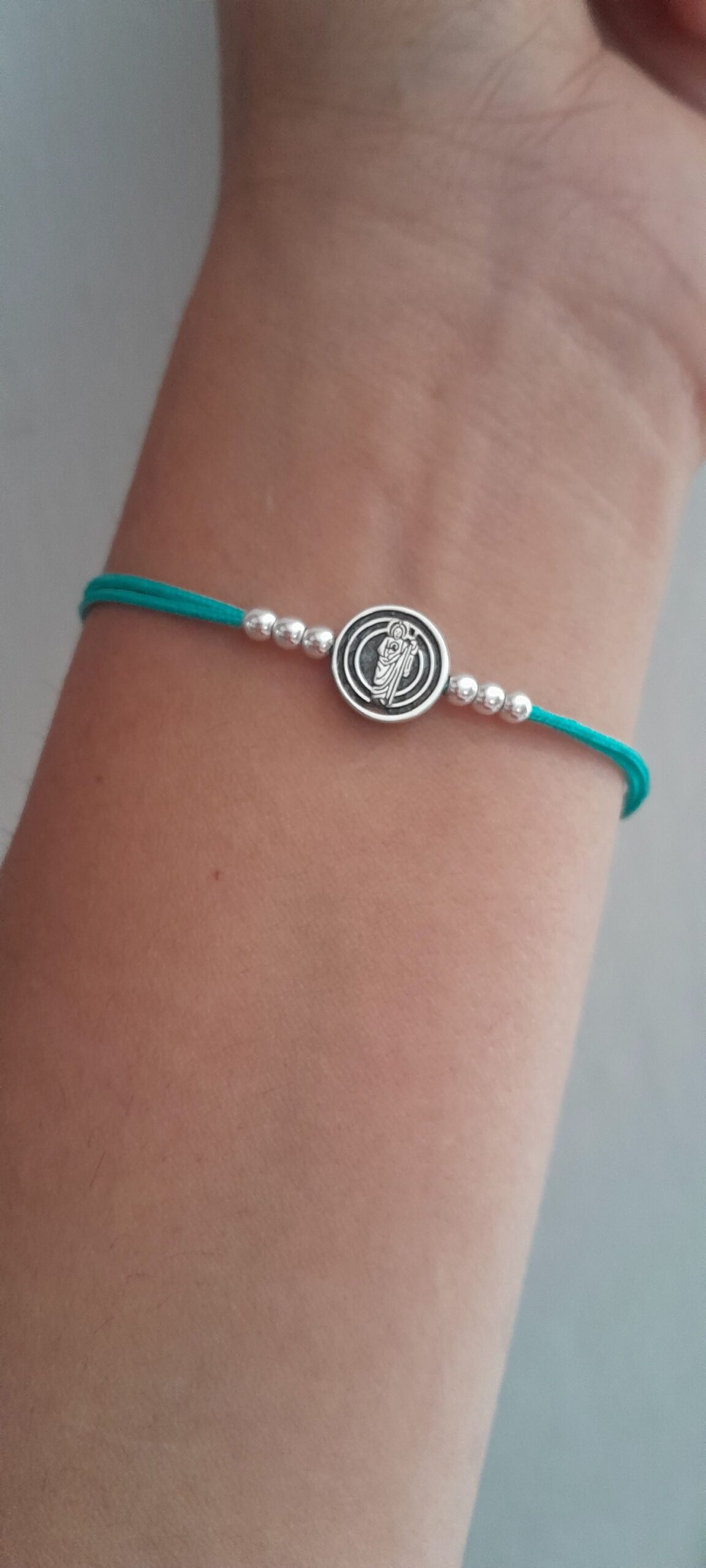 Pulsera de Hilo Verde Con Dije San Judas Tadeo en Plata .925 cantidad