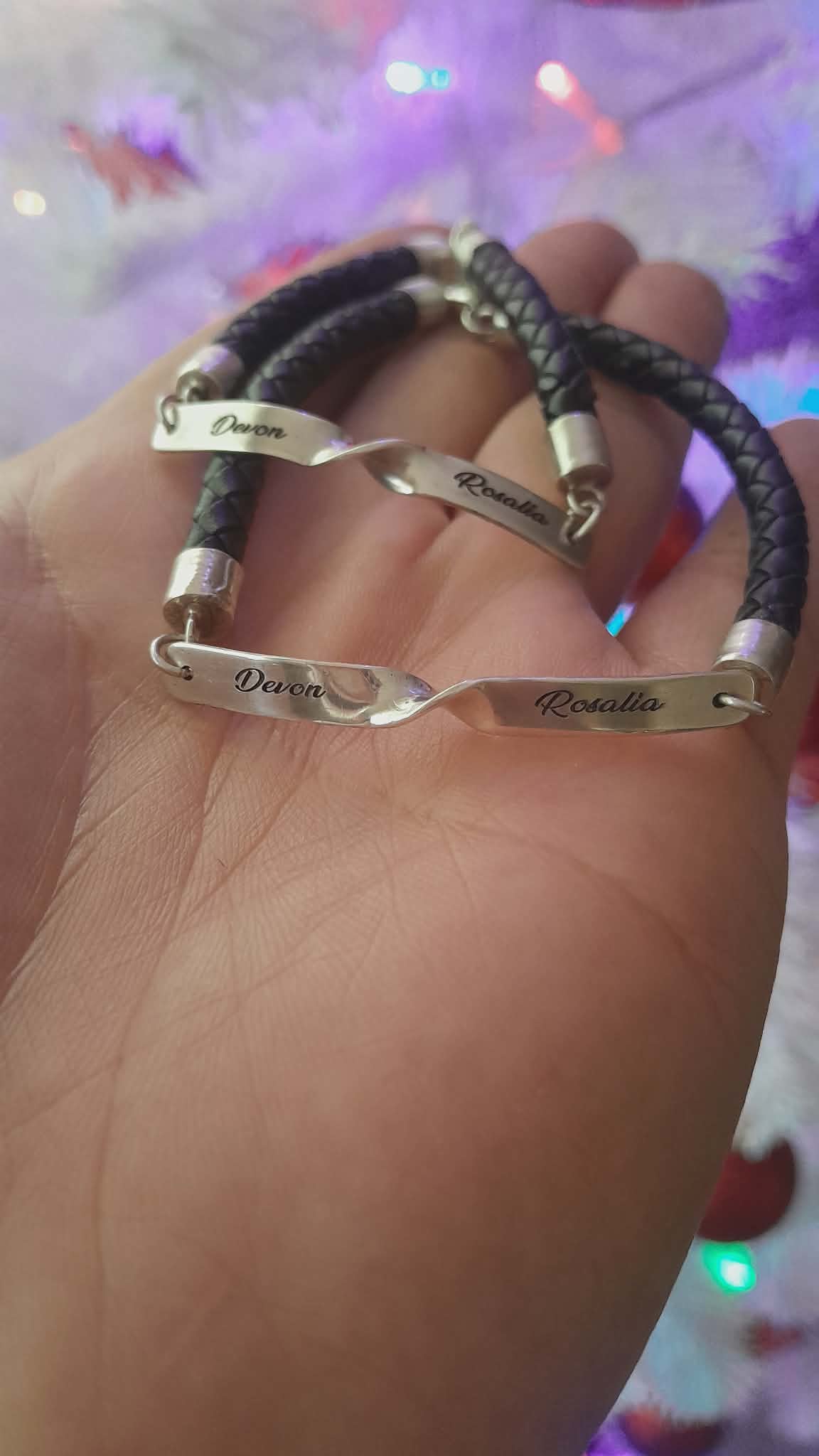 Pulseras Esclavas Curvadas Personalizadas para Parejas en Plata .925